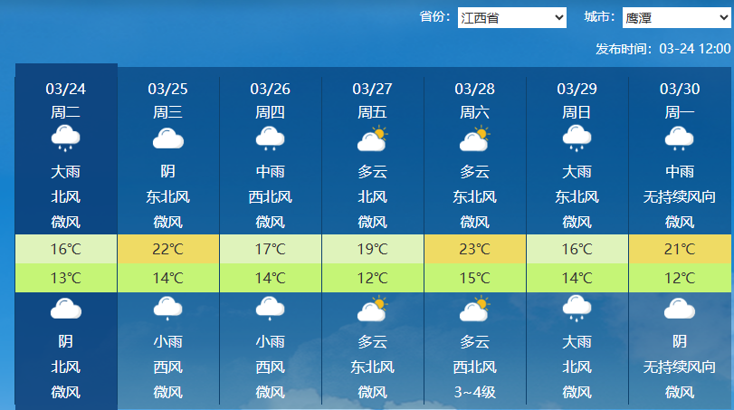 3.江西省鹰潭市未来一周天气状况如下: