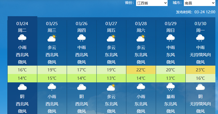 2.江西省南昌市未来一周天气状况如下: