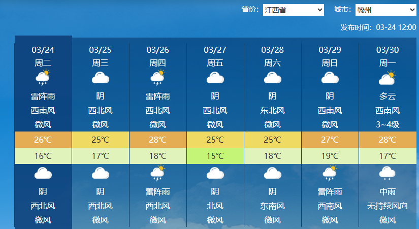 1.江西省赣州市未来一周天气状况如下: